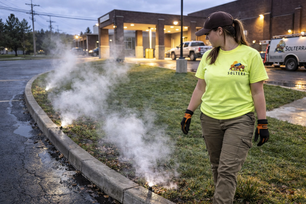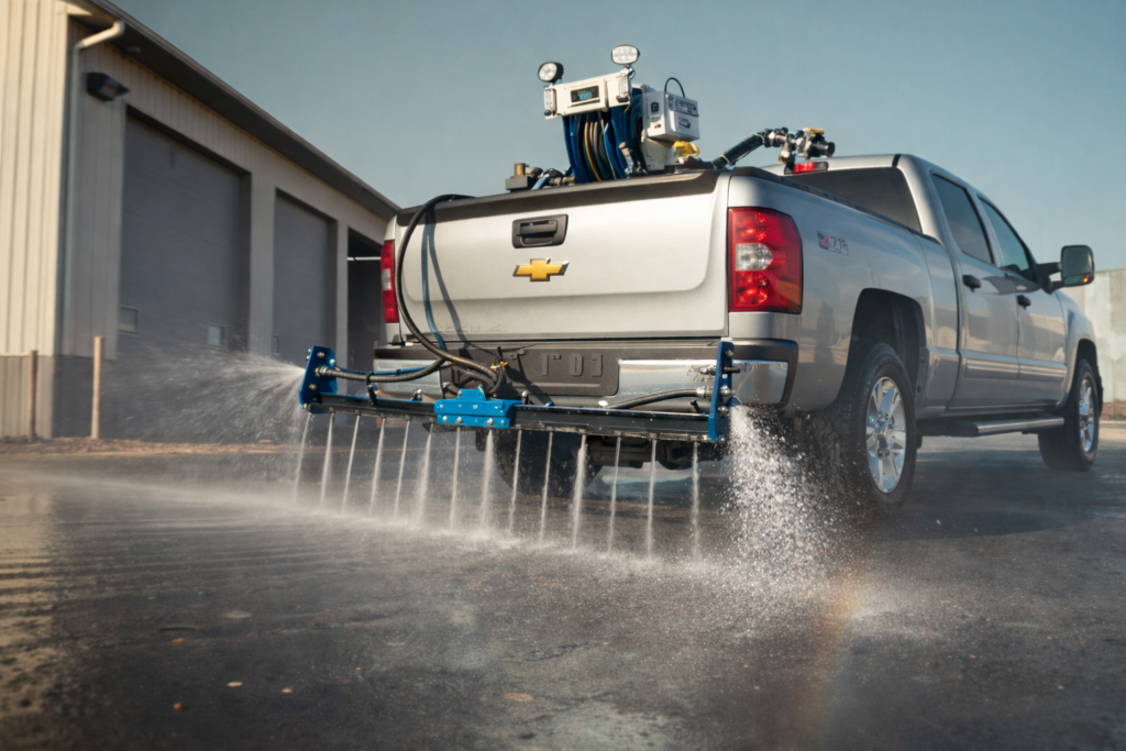 Liquid de-icing treatments prevent ice formation and improve traction on treated surfaces. Applied strategically, it enhances winter safety and efficiency.