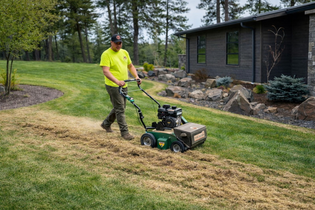 Dethatching removes excess organic buildup that restricts airflow and nutrient absorption. Clearing heavy thatch allows your lawn to grow more evenly and efficiently.